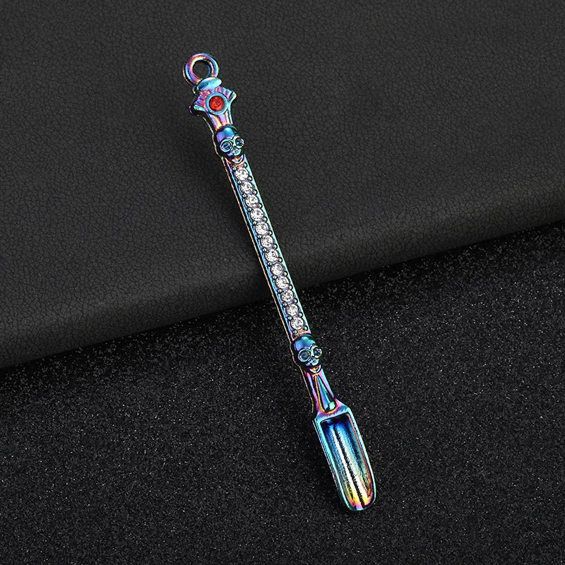 Geef je stashspel een gedurfde draai met deze antieke schep met een gedetailleerd skeletontwerp en sprankelende diamantaccenten . Gemaakt van duurzaam metaal, compact, stijlvol en gebouwd voor precisie.