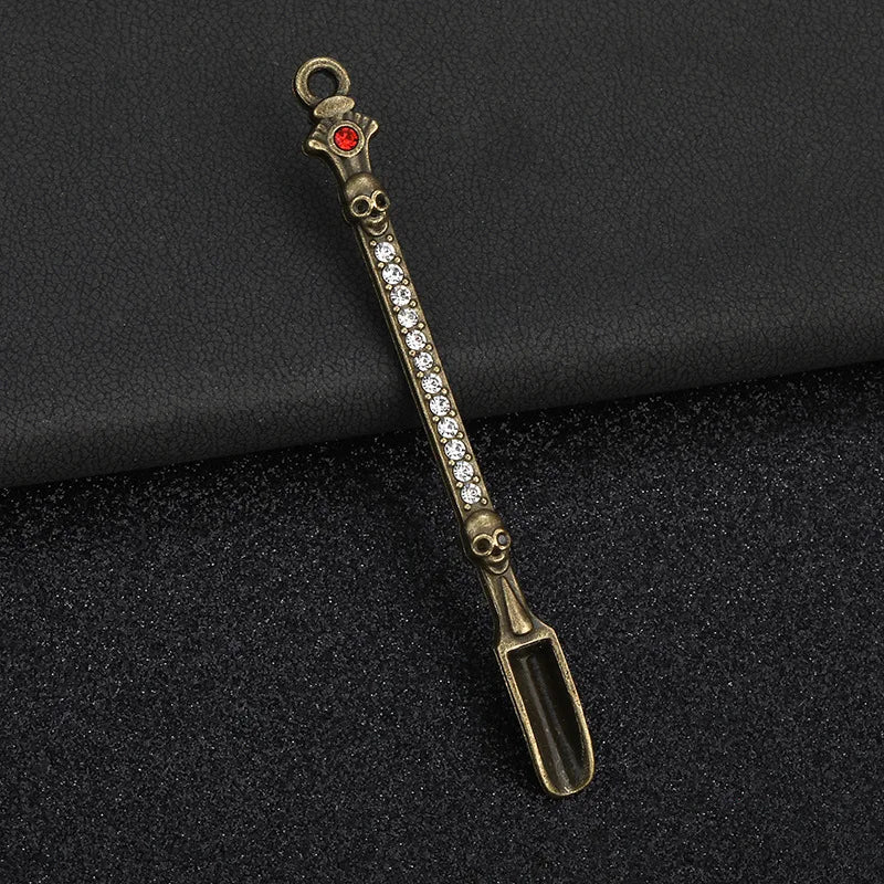 Bring a bold twist to your stash game with this ancient shovel featuring a detailed skeleton design and sparkling diamond accents. Made from durable metal, it's compact, stylish, and built for precision.